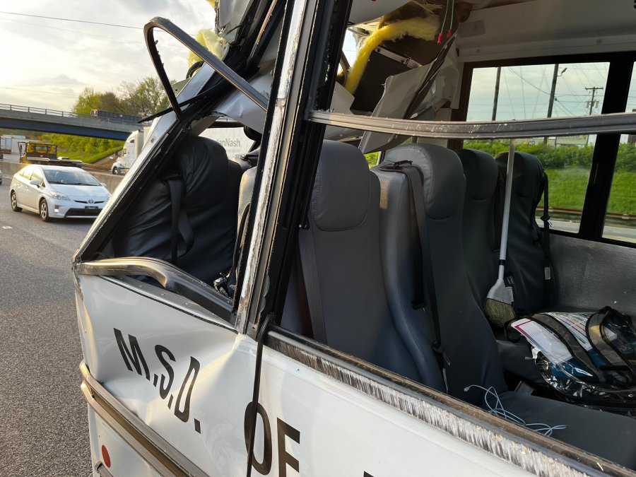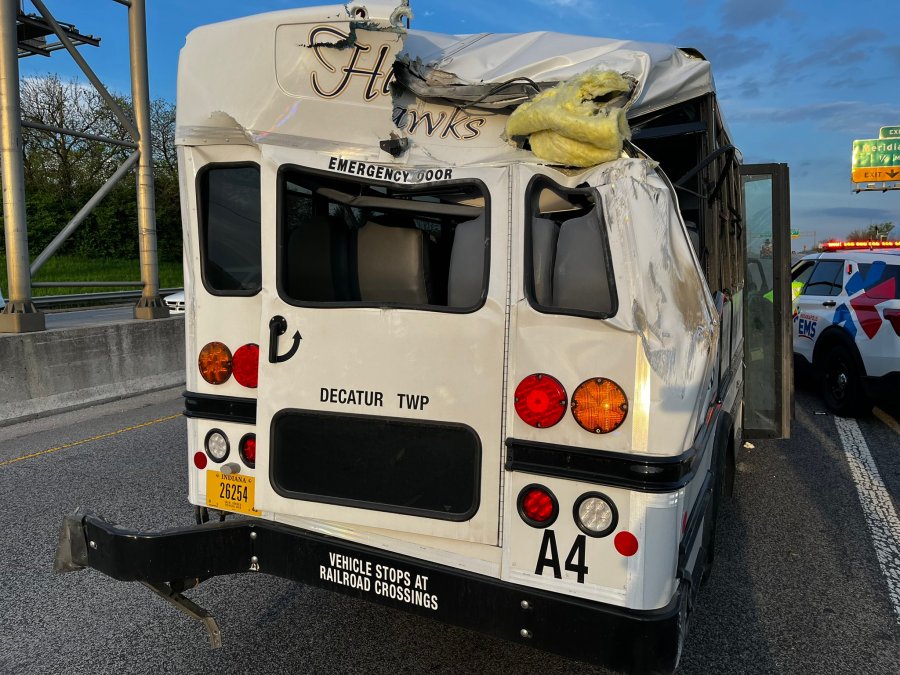 According to a post on social media from Indiana State Police Sgt. John Perrine, the crash involving a bus from the M.S.D. of Decatur Township occurred on I-70 westbound, east of Meridian Street.