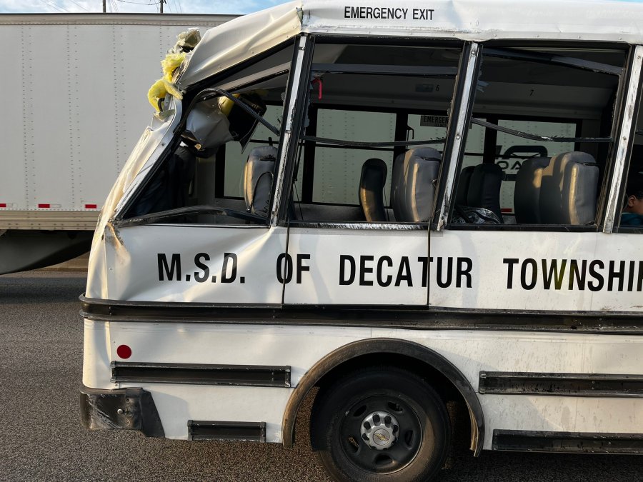 In a statement from Decatur Township schools, officials said that four students and a driver were on the bus at the time.