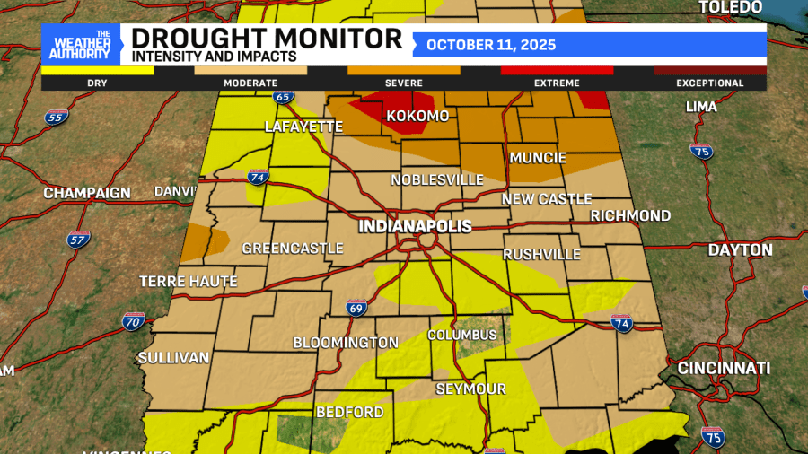 Indianapolis has only 0.15″ of rain under its belt since October 1st. That’s nearly an inch below normal and that number will only get bigger. For the first time since 2012, an Extreme Drought has returned to portions of central Indiana (portions of Carroll and Howard Counties). Otherwise, more Severe and Moderate Drought levels continue.
