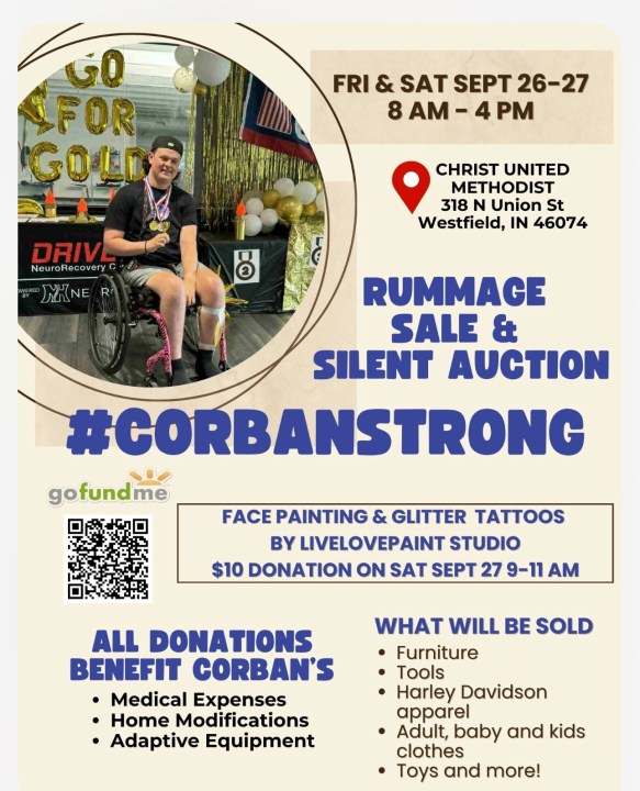 In the meantime, the family is attempting to fundraise for Corban’s expenses, which continue to pile up. His family is hosting a rummage sale and silent auction on Sept. 26 and 27 to help pay for his medical expenses and other home modifications.