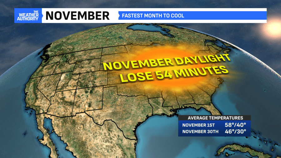 For the month as a whole, November 2025 does look to trend above normal even though it is our fastest cooling month annually. After tonight’s rain chance, no rain is forecast until at least next Friday.