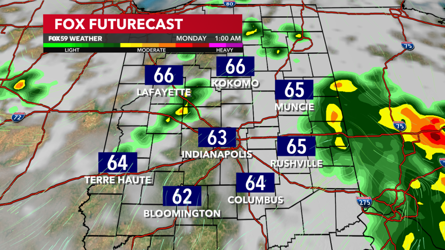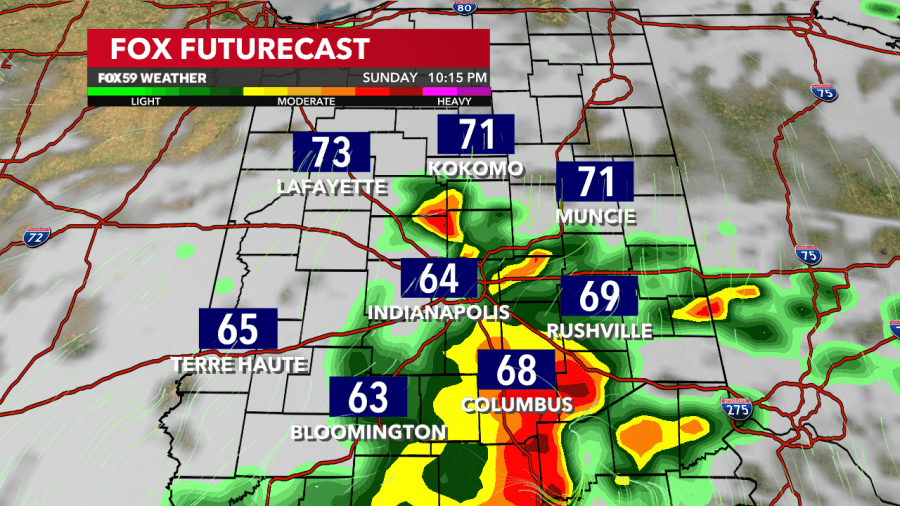 Expect temperatures and humidity levels to go up later this afternoon. With this in mind, thiswill attempt to set the stage for round #2 of storms Sunday evening. This could bring another severe threat to Central Indiana likely after the race.