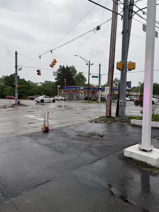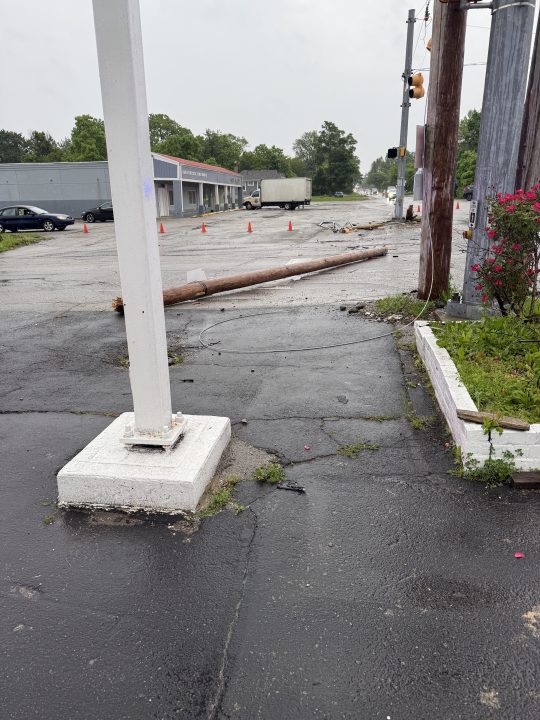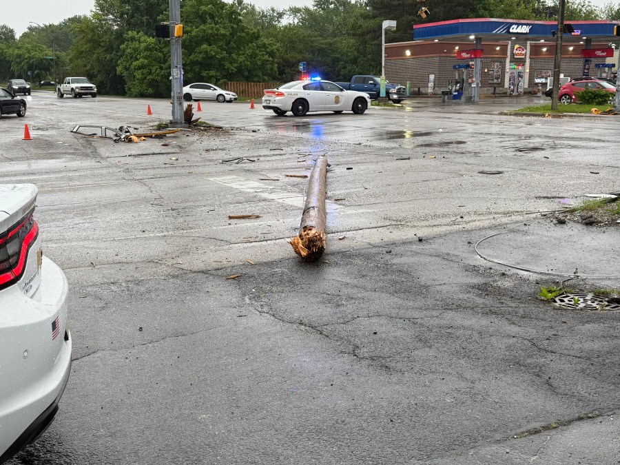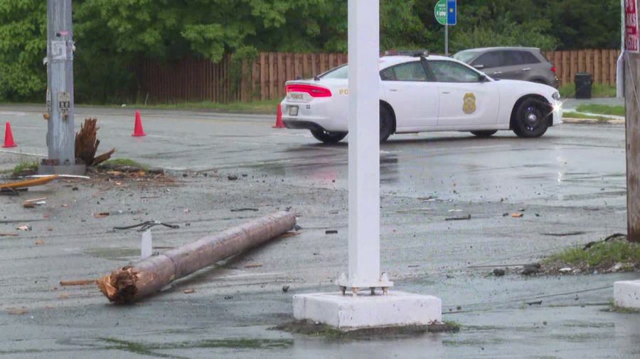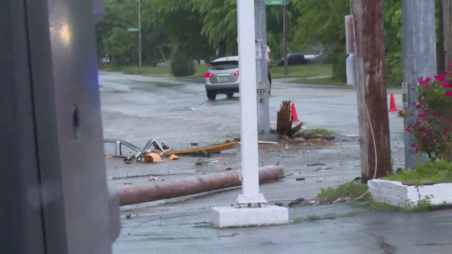 Video from the scene showed damage to the top of the bus along with a downed utility pole.