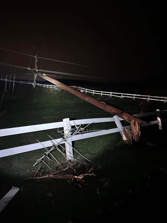 Bartholomew County Sheriff Chris Lane posted several photos on Facebook, saying the eastern side of the county sustained “lots of weather-related damage.” Photos showed down utility poles, power lines and trees. It appeared strong winds pulled sheet metal from a barn roof, which became entangled in trees and power lines.